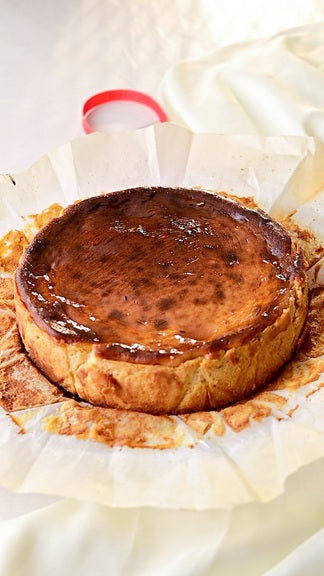 The alter ego to the classic New York–style cheesecake with a press-in cookie crust. Inspired by a Basque version, this cheesecake boasts a creamy center and a deeply caramelized "burnt" top and bottom, thanks to a high-temperature bake—no crust required.
